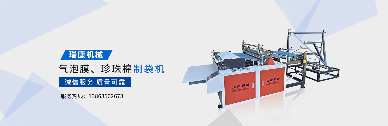 溫州瑞康機械有限公司(www_wzruikang_com.wius.cn)主要生產氣泡膜機,快遞袋制袋機,包裝機,制袋機等設備。瑞康機械是國內生產塑料軟包裝系列機械設備的專業廠家之一。產品質量可靠、誠信服務,深受用戶好評,市場占有率節節攀升。